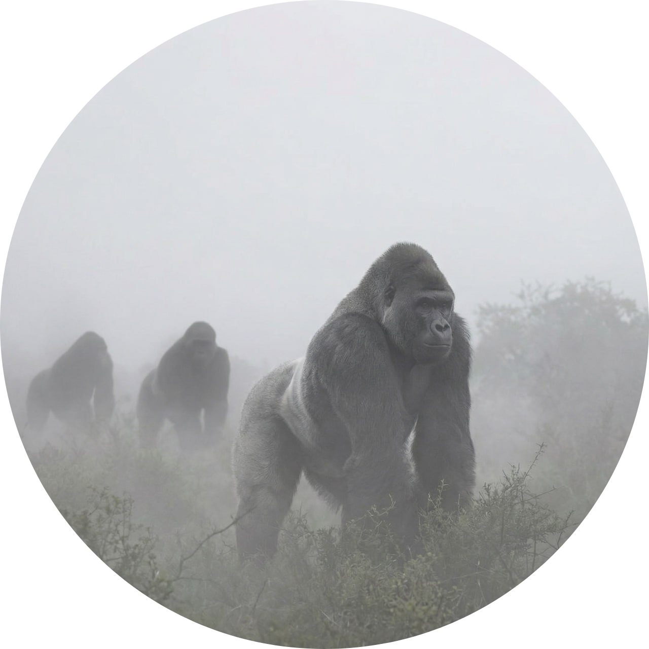 GORILLAS carries silverback energy: calm when watching, brutal when challenged. The concept comes from mountain fog, primal instinct, and dominant force.
